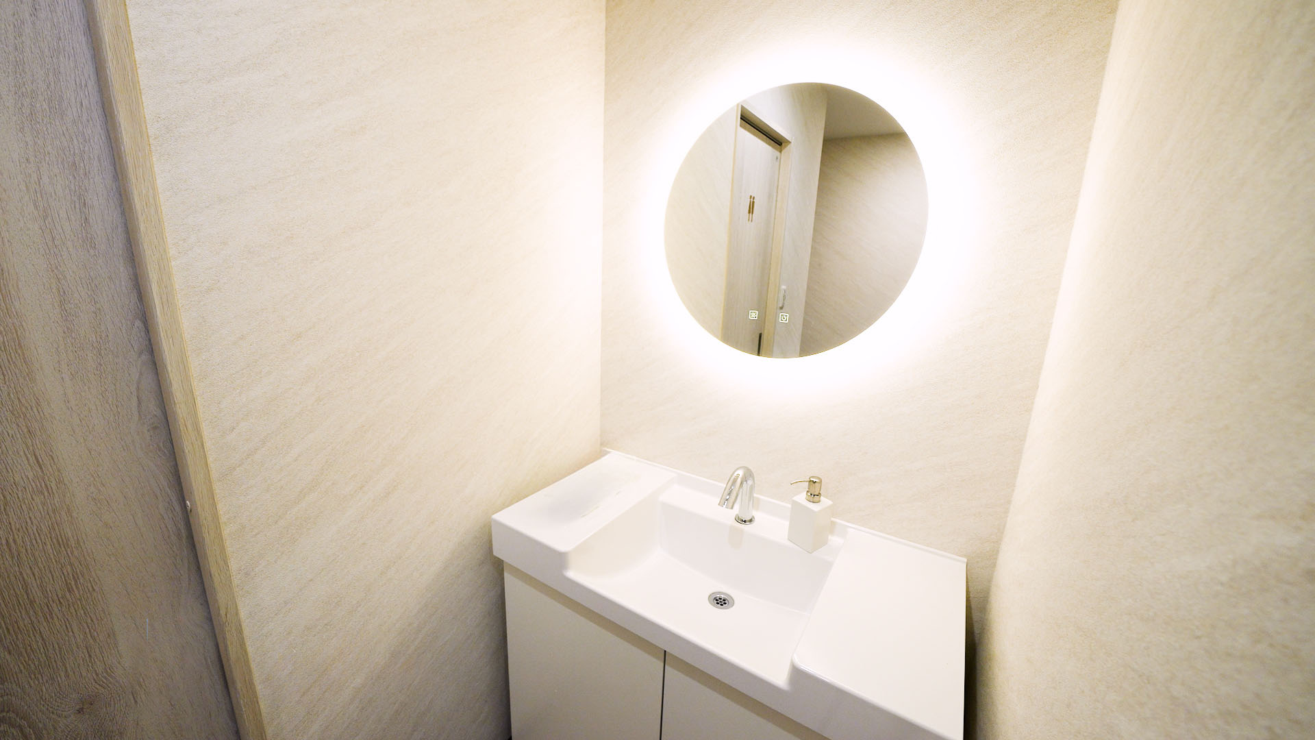 クリニック全体のデザインは、清潔感あふれる雰囲気を演出するために白を基調にしました。同時に、大理石柄やゴールドを取り入れ、美意識を刺激するような高級感と洗練された印象を与える空間に仕上げました。